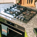 Een complete keuken is uitgerust met een waterkoker, een koelkast en een oven voor self-catering.